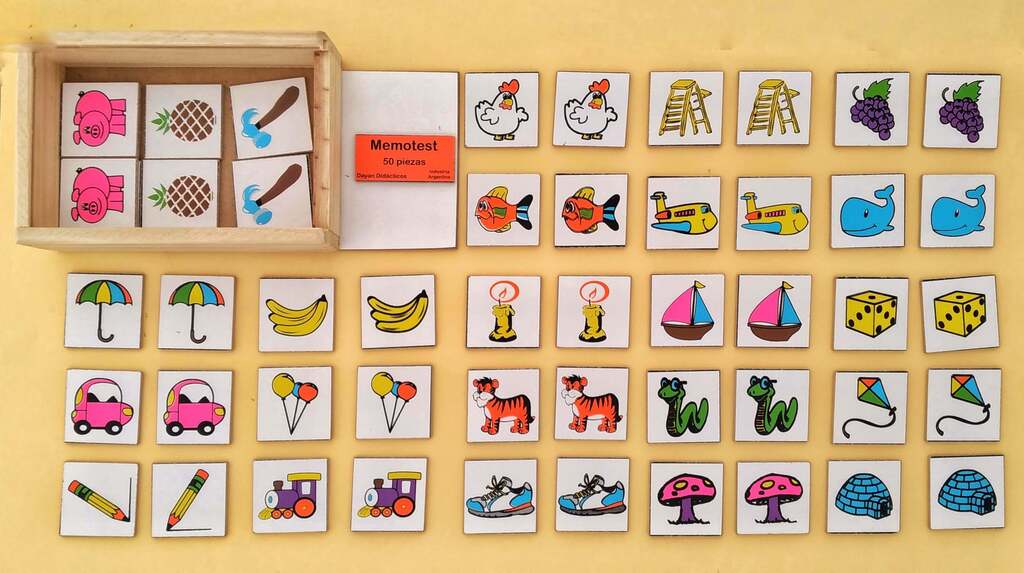 Este juego de memoria tiene la particularidad y el adicional de que las piezas están partidas en 2, de forma irregular, por lo cual hay que armar cada imagen. De este forma, habrá que recordar dónde se encuentra cada parte para poder armar las piezas. Contiene 24 imágenes coloridas de animales, objetos, medios de transporte partidas en 2, por lo cual el total de piezas es 48 piezas. Es un excelente juego didáctico de memoria y razonamiento, ya que los niños deben primero identificar el objeto partido, luego identificar la otra parte de la pieza y recordar donde se encuentran ambas partes para lograr armarla. Presentado en caja de madera de 19 cm de ancho x 10 cm y 5 cm de alto. Cada pieza mide 5 x 7 cm.