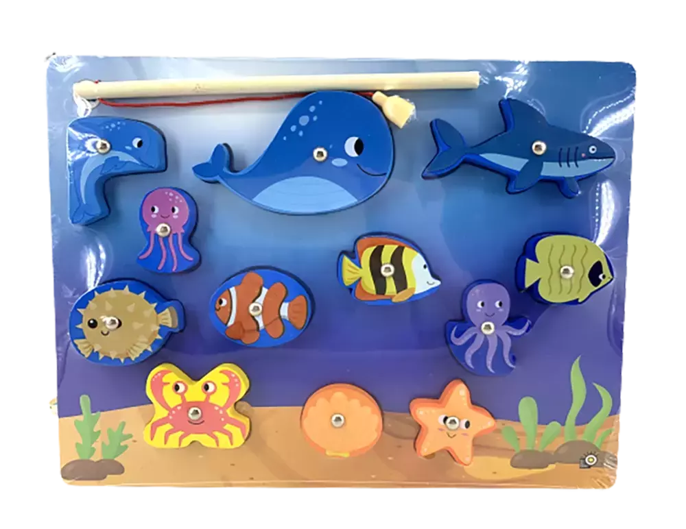 JUEGO DE PESCA CON ENCASTRE FONDO DEL MAR IMANTADO DE MADERA