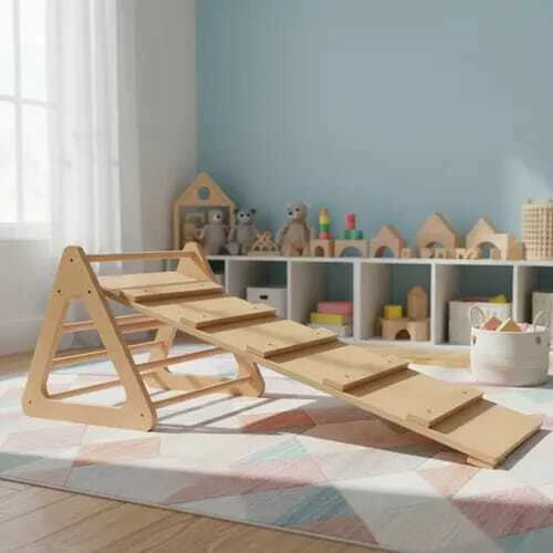 Este set combina dos elementos clave del método Montessori: el triángulo para escalar, subir, bajar, trepar, saltar, y la rampa que también sirve para trepar, escalar, subir y bajar, fomentando la exploración, el movimiento libre, el conocimiento del propio cuerpo y la experimentación. Ofrece mútiples beneficios físicos, como el desarrollo de la coordinación de los movimientos, la motricidad gruesa, el equilibrio, la fuerza muscular, la elasticidad, entre otros. Además, fomenta la autonomía, la seguridad y la autoconfianza en los niños al permitirles explorar su propio cuerpo, sus capacidades, posibilidades y sus límites físicos, y el entorno que los rodea de forma libre y desafiante. También estimula el juego libre, la creatividad, la imaginación y la resolución de problemas, mejorando su desarrollo cerebral, físico y emocional.